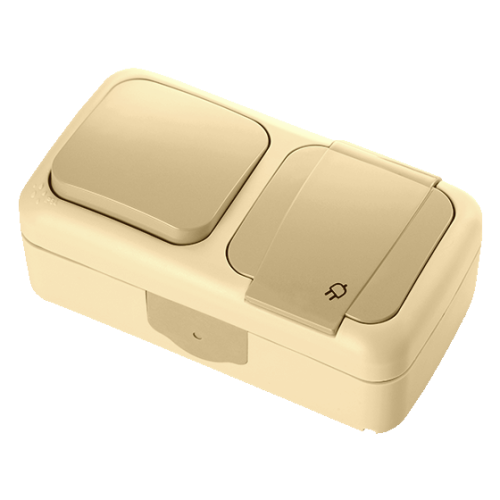 Вимикач 1 + Розетка с/з PALMIYE IP54 (крем) (арт. 90555681)